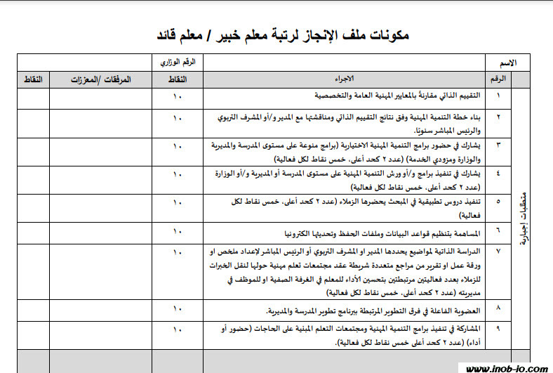 ملف يحتوي على مكونات ملف الإنجاز لرتبة معلم خبير - معلم قائد