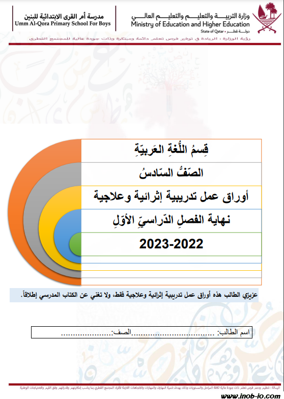 أوراق عمل أم القرى لاختبار نهاية الفصل الأول ( غيرمجابة ) لمادة اللغة العربية المستوى السادس لتحميل الملف PDF اضغط هنا وتابع