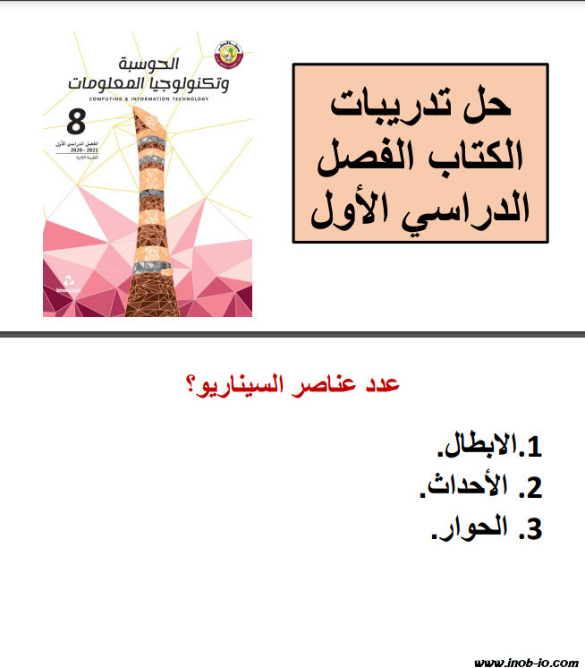 حلول جميع تدريبات الكتاب لمادة الحوسبة وتكنلوجيا المعلومات المستوى الثامن الفصل الاول