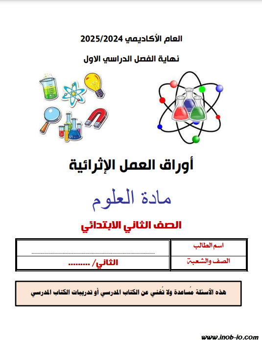 أوراق عمل إثرائية لـ لاختبار نهاية الفصل الأول ( غير مجابة )لمادة العلوم المستوى الثاني لتحميل الملف PDF اضغط هنا وتابع