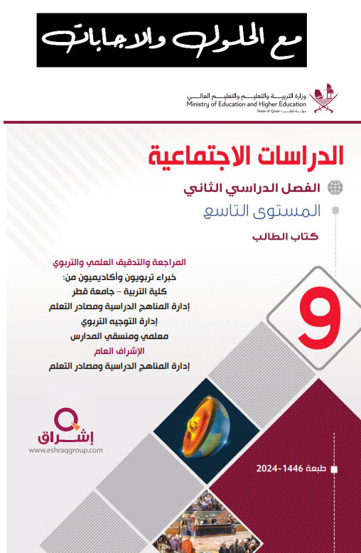 حلول واجابات مادة الدراسات الاجتماعية المستوى التاسع الفصل الثاني المنهاج القطري نسخة 1446-2024