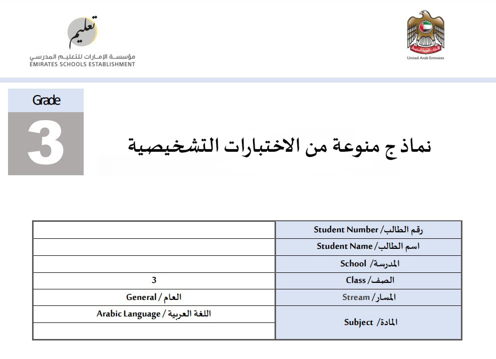 Word نماذج قابلة لتعديل + ملف pdf متعددة الاختبار التشخيصي تحديد المستوى لمادة اللغة العربية الصف الثاني